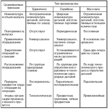 Таким образом, производственный процесс включает такие частичные процессы, как основные, вспомогательные, обслуживающие. Тип производства - классификационная категория производства, выделяемая по признакам широты номенклатуры, регулярности, стабильности объема выпуска изделий, типа применяемого оборудования, квалификации